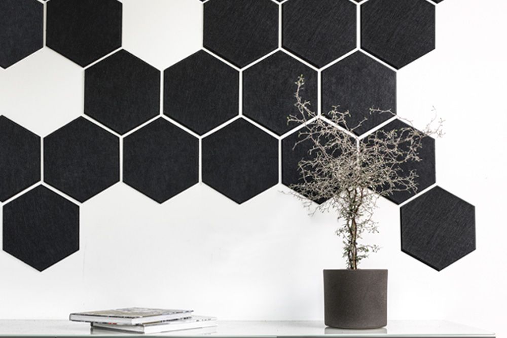 Setet består av 16 svarta akustikpaneler och kan monteras efter egen önskan och behov.