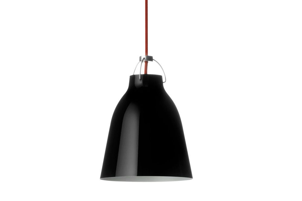 Caravaggio Pendel P1, blank svart med röd sladd, 21,6 x 16,5 cm