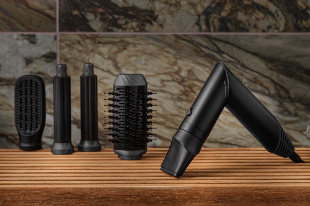 Multistylern har utbytbara stylingmunstycken som gör det möjligt att fixa håret på otaliga sätt. Med en plattborste, en rund varmluftsborste, två locktänger och ett hårtorkmunstycke, är det bara fantasin som sätter gränser för håret.