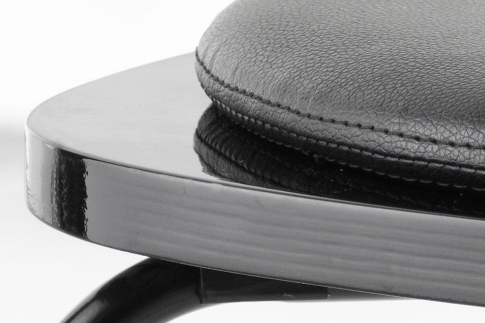 Pallen har fyra ben som garanterar stabilitet och är elegant utformad med en sits i trä och ben i stål som är målade i samma blanka färg. Den avtagbara svarta sittkudden skapar en fin kontrast.